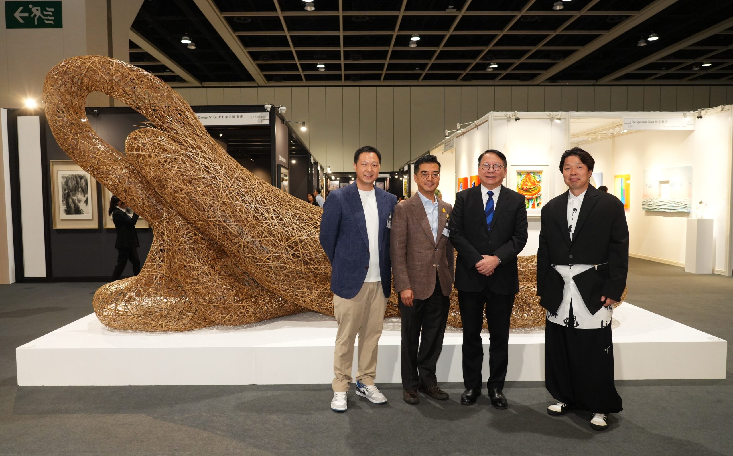 政务司司长陈国基先生就十分欣赏在典亚艺博2024中,由来自京都、巴黎及香港的梦工房所呈献的竹艺大师四代田辺竹云斋的大型装置艺术作品——「循环」。