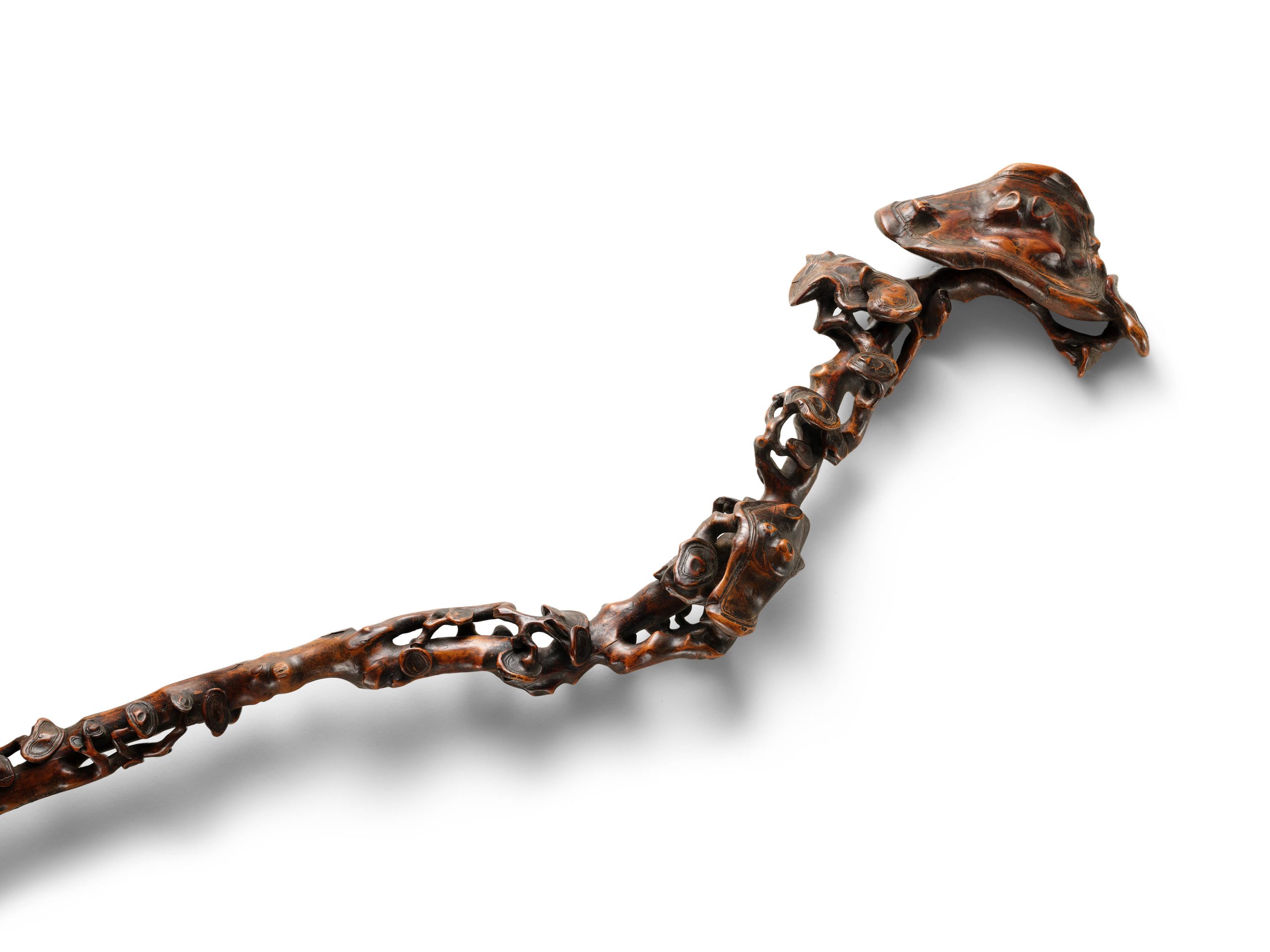 清 大型木雕灵芝纹如意杖