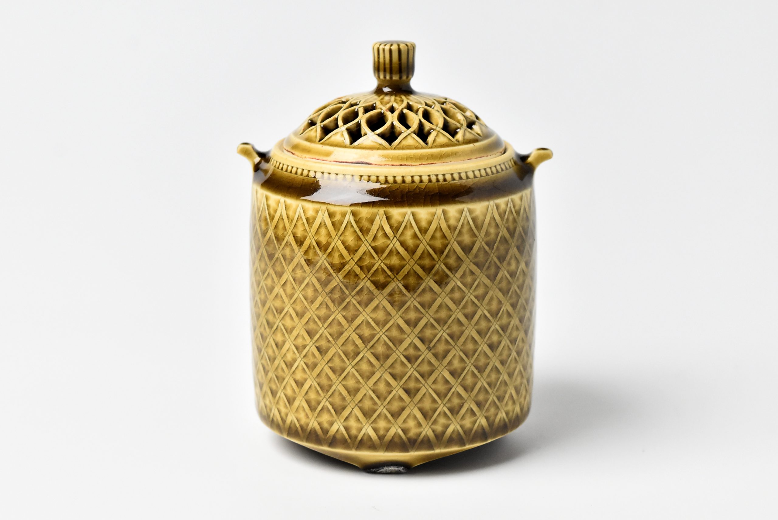 Incense burner with yellow glaze